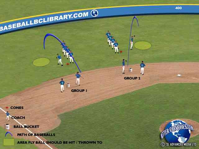 • The purpose of this drill is to get players (outfielders) to practice proper footwork when reacting to a ball hit in their general direction.